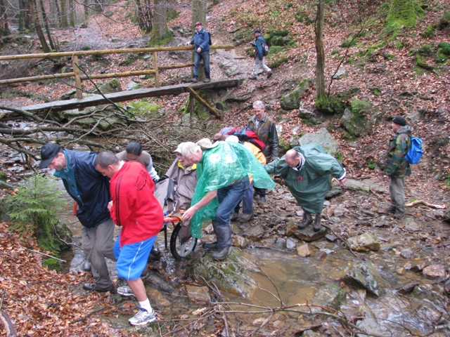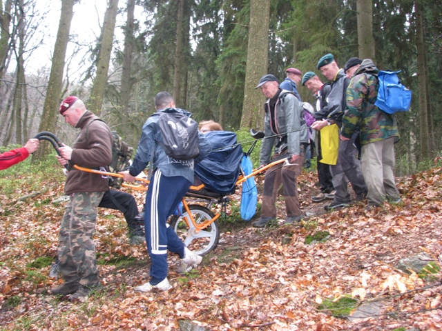 La météo avait bien annoncé la pluie et elle ne s'est pas trompée. Heureusement, elle est restée modérée et une sapinière nous a permit de pique-niquer relativement au sec. Bilan de la journée : 46 personnes pour une balade très sportive (9 km 500 avec un dénivelé de + 270 m), dont 6 PMR et 5 AP. Les tâches blanches qui apparaissent sur certaines photos sont le reflet du flash sur les gouttes de pluie, tombées principalement entre 12 et 14h environ.