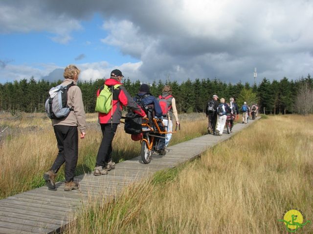 4 PMR et 14 accompagnateurs (dont 4 non ou mal-voyants) pour une boucle de 10 km au départ de Botrange avec jonction à la Baraque Michel par le versant nord en suivant le bord des zones C. Le retour s'est effectué par la Fagne de Polleur et la station du Mont-Rigi.