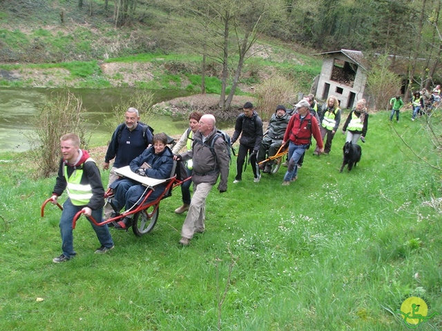 L'activité du jour a réuni 9 PMR et 34 accompagnateurs actifs pour un parcours sportif d'une distance de 8km400 et d'un dénivelé de +200m. A souligner la participation très positive des étudiant(e)s et professeures de la Haute Ecole Robert Schuman de Virton ainsi que de plusieurs habitants de la commune pour la première fois.