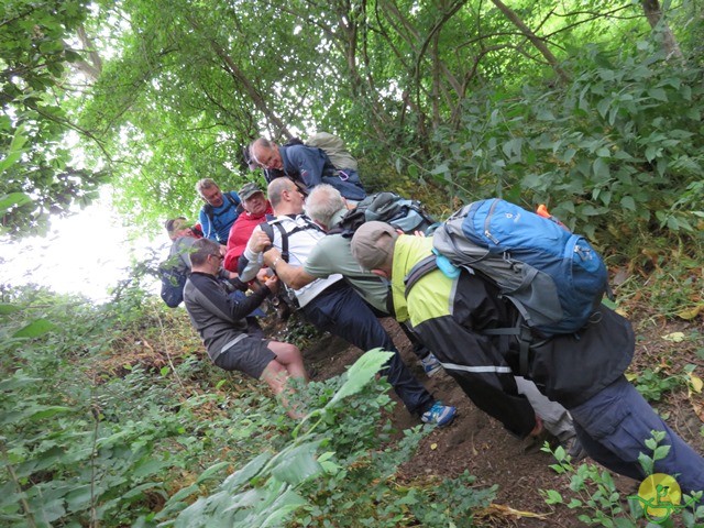 Le parcours du jour s'est déroulé en ligne de 11 km pour 10 PMR et 30 accompagnateurs. Le rendez-vous était fixé au parking de la Roche aux Faucons, pour en admirer le point de vue, descendre jusqu'à la passerelle pour franchir l'Ourthe, suivre le Ravel, traverser le petit village classé de Ham et terminer à Esneux.
