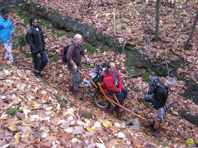 Parcours de 10km900 pour la dernière activité sportive de cette année avec 11 joëlettes et 72 accompagnateurs. Participation de 83 personnes donc, ce qui égale le record établi le 22 juin 2014 par Mathieu et sa famille à Havré.