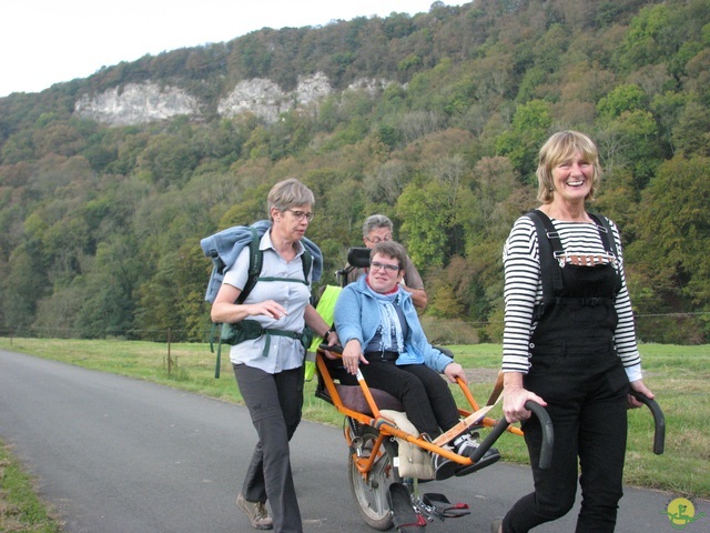 Les 100 km de Cap48. Participation aux 2 derniers tronçons, d'Esneux à Liège, avec 3 joëlettes et 13 accompagnateurs actifs pour une distance de 20 km.